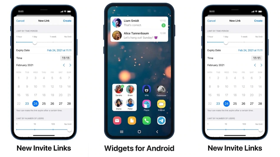 此外,电报团队对桌面小部件功能进行了说明。桌面小部件将允许用户查看最近的电报消息的预览,或者仅查看联系人的姓名和个人资料图片。