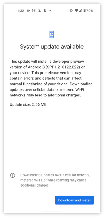 据悉,谷歌已经发布了该版本,正在运行 Android 12 Developer Preview 1 的用户可手动检查更新。