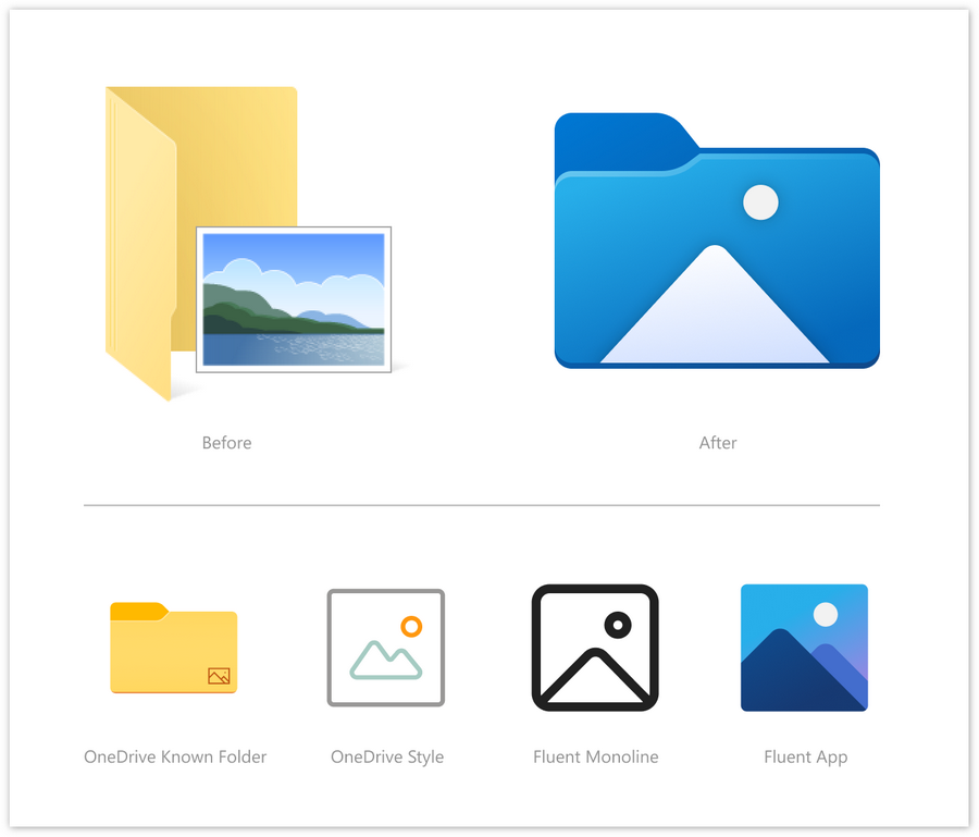 现在,作为普通用户,无需加入 insider 计划,我们仍可通过网友共享的图标包,将新的 Fluent Design 图标应用在自己的设备上。这些图标包从 Shell32.dll 和 Imageres.dll 中提取,同样适用于 Win 7 等系统。文末提供了下载途径。