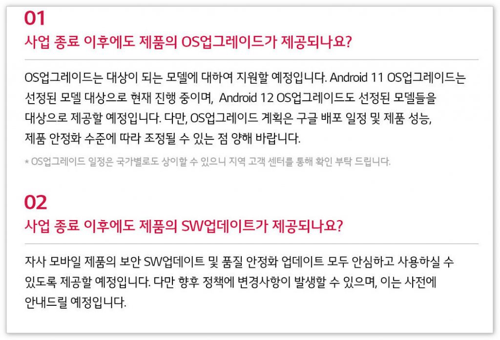 LG 在新闻稿中表示,“将在一段时间内为现有移动产品的客户提供服务支持和软件更新,具体时间因地区而异。”