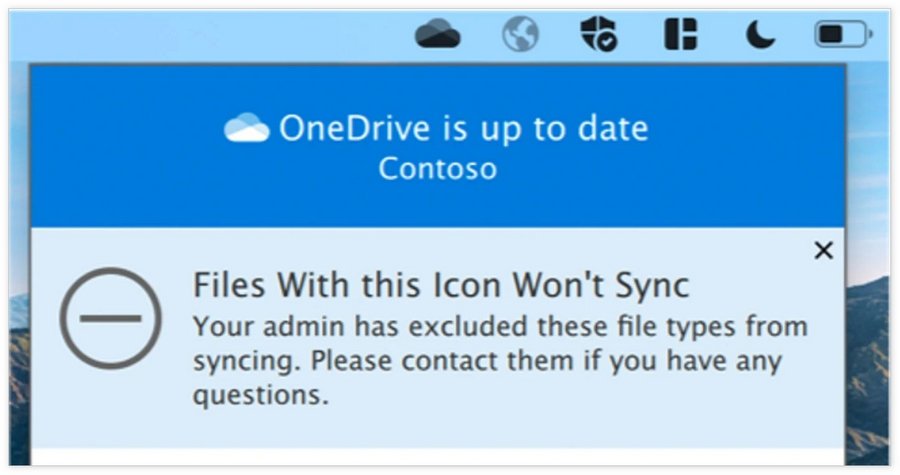 在 Finder 中,文件会显示为带有 “已从同步中排除” 图标。用户还将在 OneDrive 活动中心看到一条消息,解释为什么文件不同步。