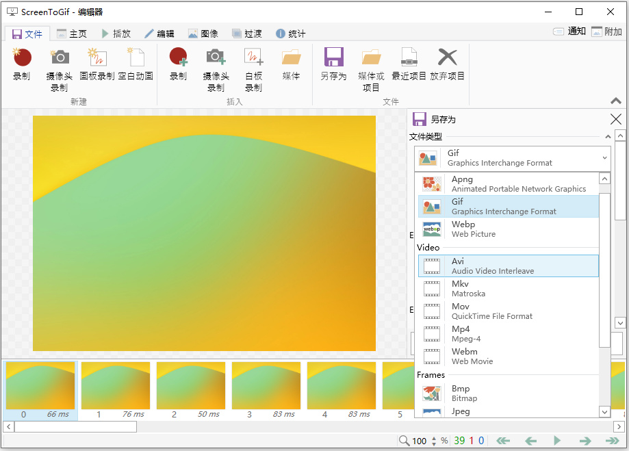 软餐(ruancan.com)实测发现,ScreenToGif 2.28.2 新增了多个文件的导出格式,现在支持导出为 Webp,Bmp,Jpg 和 Mov 等类型文件。(下图)