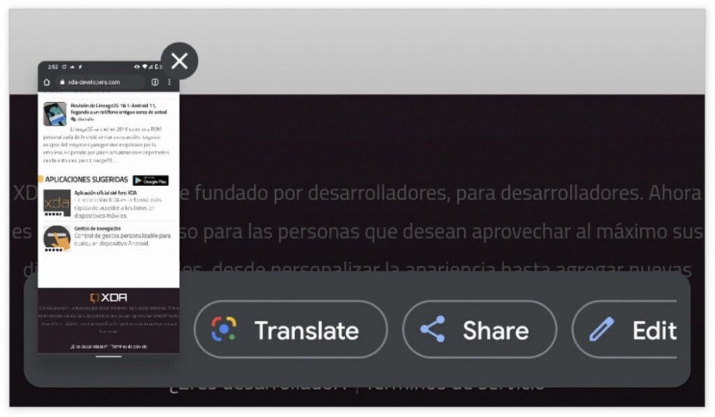 在新版本上,当对屏幕截图时,如果手机检测到截图中含有外语时,则会在底部的工具条中显示一个 “翻译” 按钮(位于 “分享” 和 “编辑” 旁边)。它将自动检测文本并将其翻译为英文。目前该功能似乎仅支持翻译为英文。