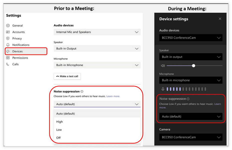 - 自动:Microsoft Teams 应用会根据环境声音设置噪声抑制。