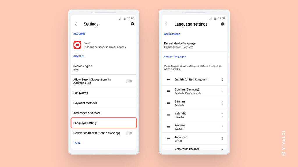 在旧版本上,Vivaldi 浏览器遵循默认的系统语言,但不支持为浏览器选择其他语言。例如,如果你将英语设置为默认系统语言,那么 Vivaldi 会以英语显示所有内容,无法单独将浏览器切换到其他语言。
