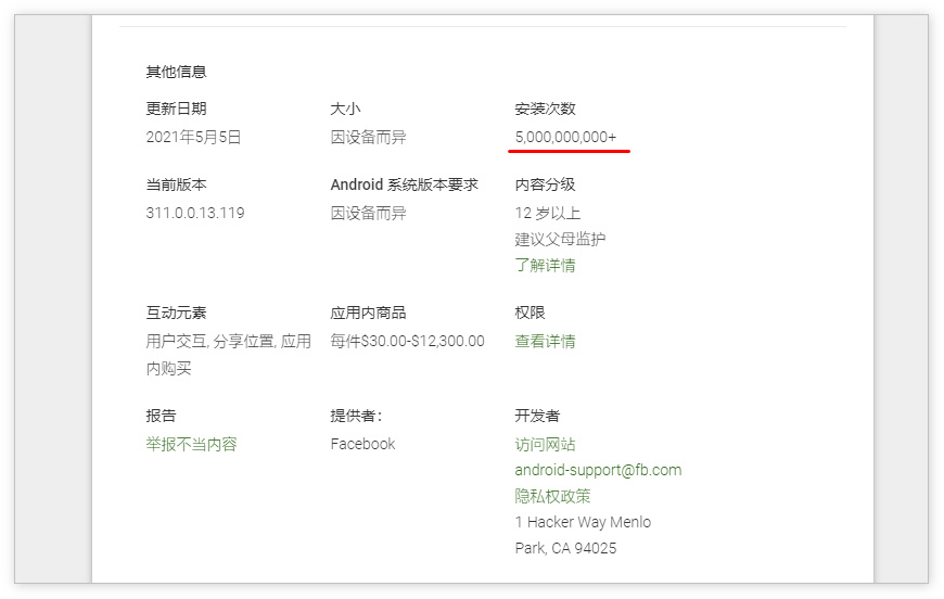 从开发者层面,脸书也是除 Google 之外唯一一家进入 50 亿俱乐部的公司。