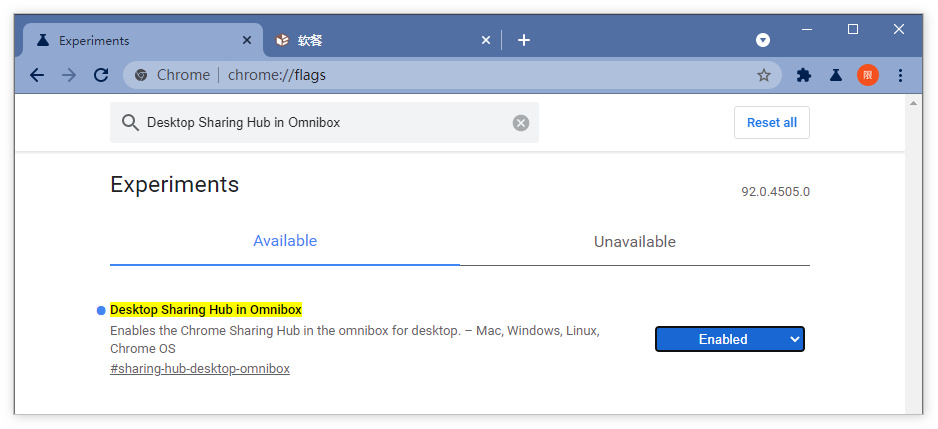 请使用 Chrome Canary 浏览器访问 chrome://flags,搜索 “Desktop Sharing Hub in Omnibox” 标记并启用它 。