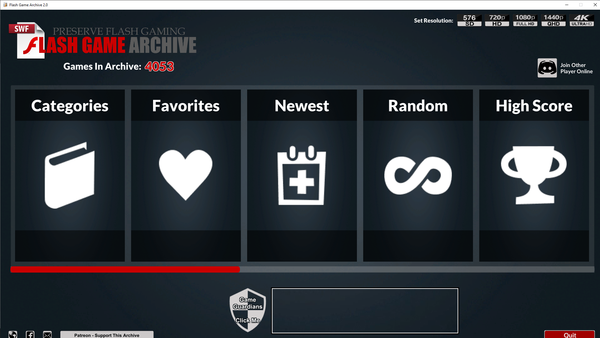 启动后,Flash Game Archive 将以全屏模式呈现,用户可按需设置屏幕分辨率。