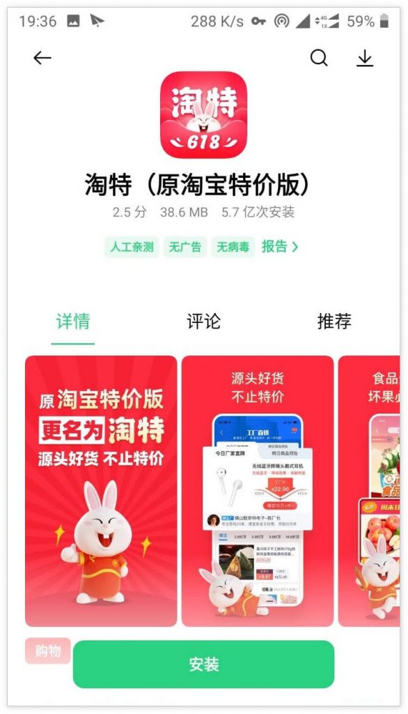 软餐访问应用商店看到,更名之后的 “淘宝”App 和 “淘特” 均已上架到各大应用商店。