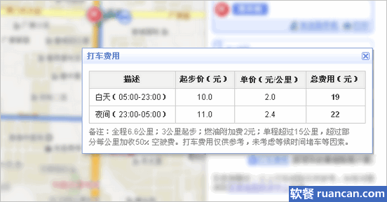 友情提示:打车费用计算功能在 wap 版百度地图中并没有提供,因此软餐建议出行前先查询好打车路线和费用,聪明你的出行。