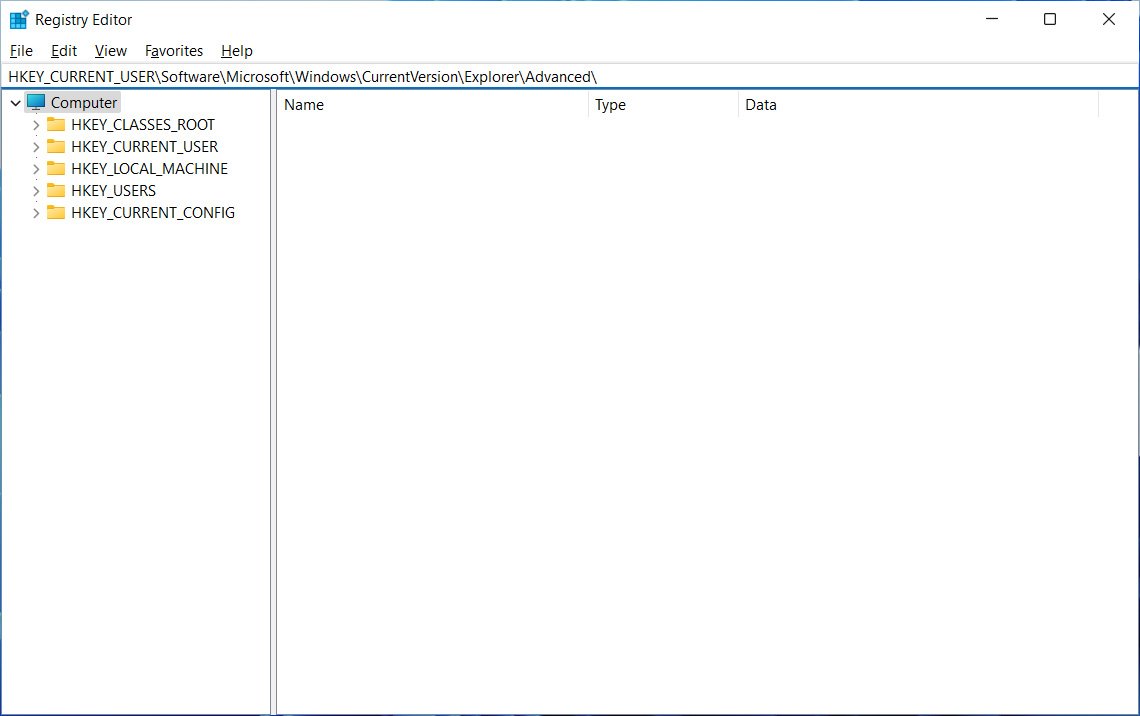 HKEY_CURRENT_USERSoftwareMicrosoftWindowsCurrentVersionExplorerAdvanced