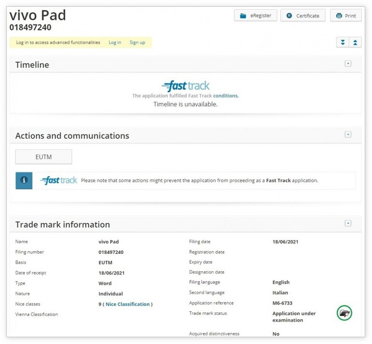 软餐获悉,中国智能手机厂商 VIVO 已向欧盟知识产权局 (EUIPO) 申请一个名为 “vivo Pad” 的商标,这可能预示着 VIVO 可能即将推出其首款平板电脑产品。