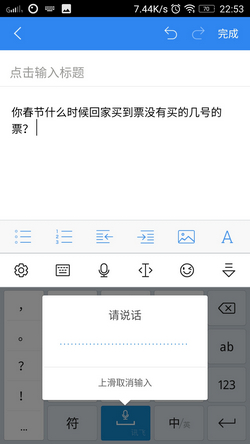 而长按空格键功能则考虑到了长句录入的需求,再长的句子,只要在录入完毕后松开空格键,长句语音即可录入,并瞬间转为文字。这和微信上的语音录入方式非常接近,符合用户的使用习惯。