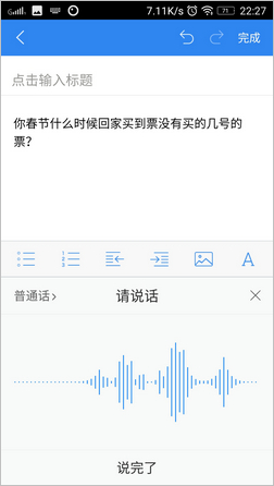 在此之前,要从手动录入方式切换到语音输入模式,需要点击麦克风按钮开启语音输入,但这个功能只适合短句的录入——用户往往没有说完一句话,语音录入就自动关闭了。