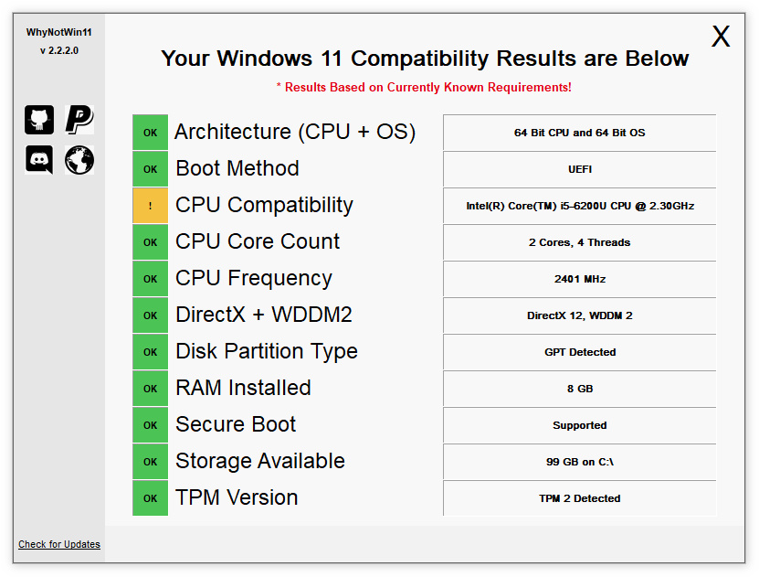 软餐获悉,为了改变这一局面,一位开发者适时推出了一款名为 WhyNotWin11 的开源检测工具,堪称 PC Health Check 的最佳替代品。
