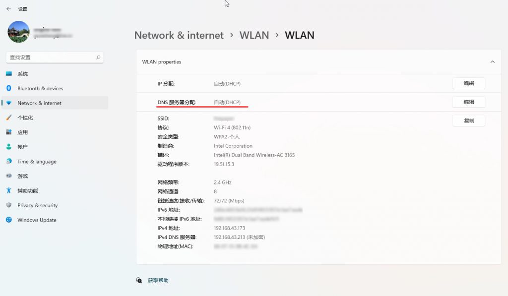 1 、打开 “设置”>“Network & Internet”>“ WLAN”>“硬件属性” 。如下图。