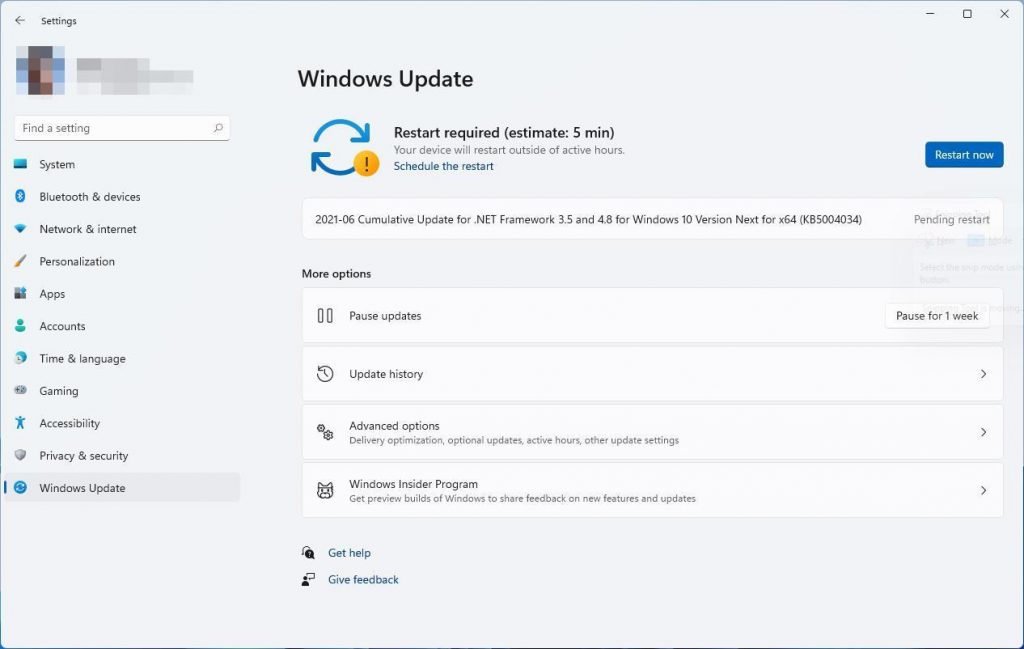 和 Windows 10 相比,Windows 11 中的 Windows 更新功能没有太大改动。用户可以选择暂停更新 1 周,并且 Windows 11 默认情况下会启用 “传递优化” 功能,即会从互联网上其他 PC 设备上下载更新,以加快更新下载速度。