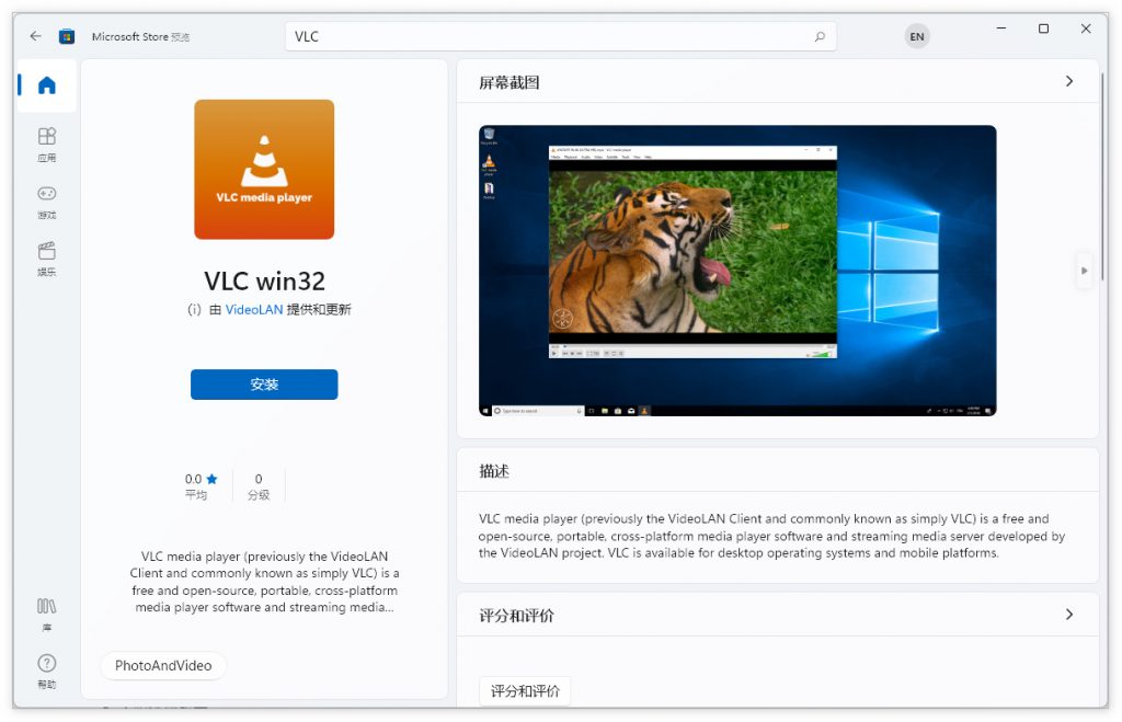 读者可从 Windows 11 微软商店中搜索 VLC win32 来获取该应用。