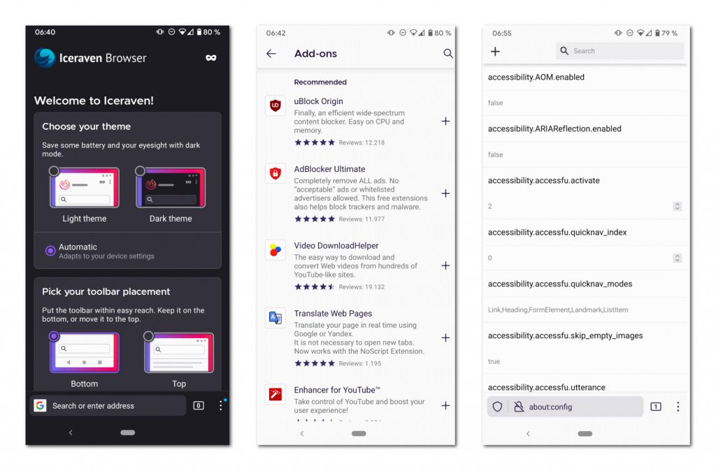 如果你是 Firefox 用户,很可能对安卓版 Firefox 感到失望——它支持的浏览器扩展少得可怜,甚至移除了对 about:config 配置功能的支持。如果你在寻找替代品, Iceraven 可能是值得考虑的选项。
