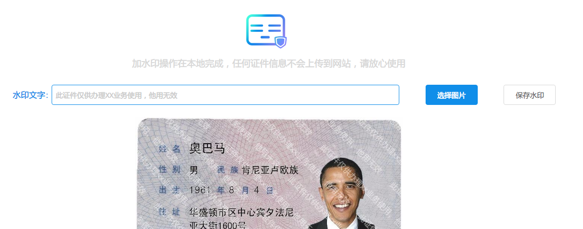 给自己的身份证加上水印 行者无疆 • 2017-12-03 21:30 • 独家, 网络应用 [ 更新于 2020 年 11 月 10 日 14:49 ] 现在越来越多的地方需要身份证照片,如果我们随便的给他,又容易造成个人隐私的泄露,那么怎么办呢? 一个方法就是给自己的身份证加上水印,这样,可以稍微有一点心理安慰,那么怎么加水印呢?不要 ps,不要美图秀秀,只要一个网站就可以搞定 这就是 http://simpletool.cn/ 网站的页面非常简洁,只有一个文本框,里面可以输入你想要加的水印文字,还有一个上传按钮和一个保存按钮 有需要的同学可以试一下 本站电报频道 / 电报群 工具身份证 赞 (2) 行者无疆 0 0 生成海报 发表回复 您的邮箱地址不会被公开。 必填项已用 * 标注*昵称: *邮箱: 网址: 记住昵称、邮箱和网址,下次评论免输入 提交
