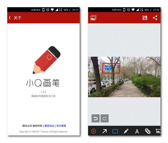 答:我们是腾讯公司的图像技术团队的同事。我们经常需要和同事们在微信群里和讨论产品截图。市场上没有一个让我满意辅助工具,标注截图很折腾人。于是, 我们决心做一个好用的手机标注工具给自己用,做了几周,小 Q 画笔 APP 就诞生了。