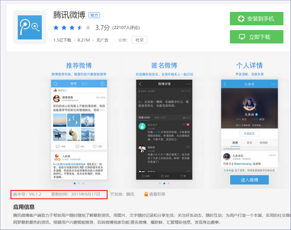 这一更新(V6.1.3)的源头来自 Google Play 应用商店,即腾讯微博仅向 Play 商店提交了新版本,颇为低调。