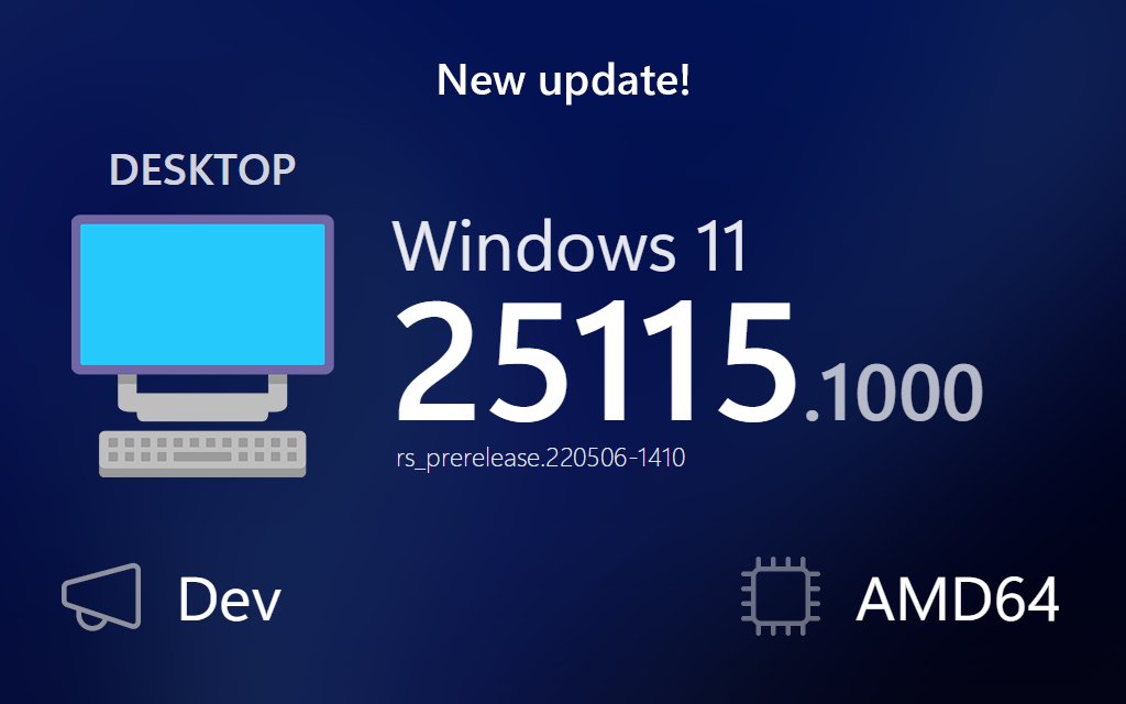 - Dev 用户将获得 Windows 11 Insider Preview 25115.1000 (rs_prerelease)。