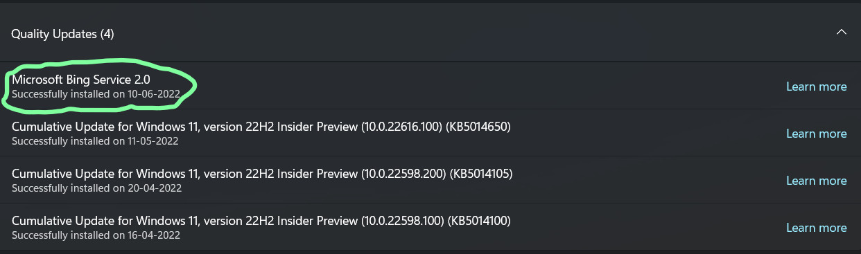 软餐获悉,微软正通过 Windows Update 向 Win11 和 Win10 用户推送一个「神秘」的更新——它名为 “Microsoft Bing Service 2.0”,被归为质量更新。按照微软官方的说法,Bing 服务的功能为:“Bing 服务允许您检索 Bing 结果。 Bing 可以以您的语言、图像和视频返回全球许多国家/地区的网络和新闻结果。” 它将支持搜索引擎 Bing 的运行。暂不清楚这次发布的 Bing Service 2.0 版将带来什么改进。