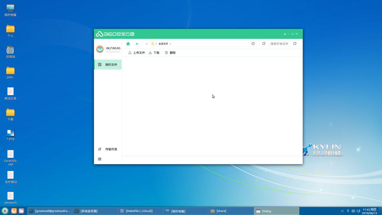 使用 360 安全浏览器在国产操作系统上也可以访问云盘,但要传输和下载大数量和大容量文件,网页版连接就很难保障传输速度和传输质量,这种情况下就需要客户端版的支持。